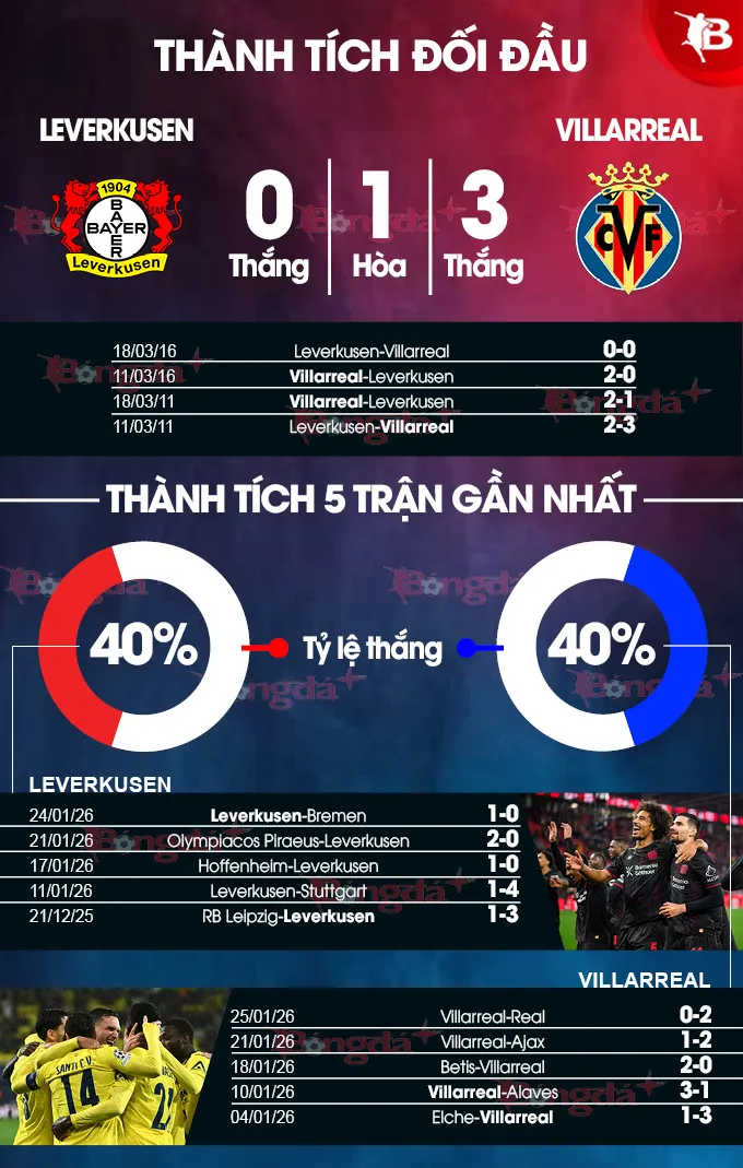 Bayer Leverkusen đang có tâm thế rất tốt khi bước vào trận đấu sống còn này. Chiến thắng 1-0 trước Werder Bremen ở Bundesliga là liều thuốc tinh thần quý giá. Tuy nhiên, hành trình tại Champions League của họ không mấy suôn sẻ với chỉ 2 chiến thắng sau 7 trận. Một chiến thắng trước Villarreal sẽ mở cánh cửa play-off cho thầy trò HLV Kasper Hjulmand.